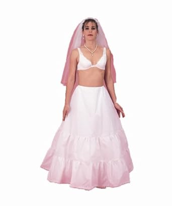 This bridal petticoat/slip has a drawstring waist that fits sizes 4-20 (22" TO 38" WAIST). The slip is 40 inches in length and it has a top and underskirt made from crisp white bridal taffeta. Top skirt has a double 11" ruffles with beautiful scalloped lace trim on the bottom ruffle. Two tiers of tulle ruffle are attached to the underskirt and sandwiched in between so that no netting touches your skin and for added fullness to give an ultra slimming A-Line shape.