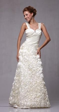 Satin full length formal gown, sweetheart neckline with rhinestone, pleated bodice design, rosettes skirt. Fully lined with built in bra. Color available in red, hot pink and ivory.